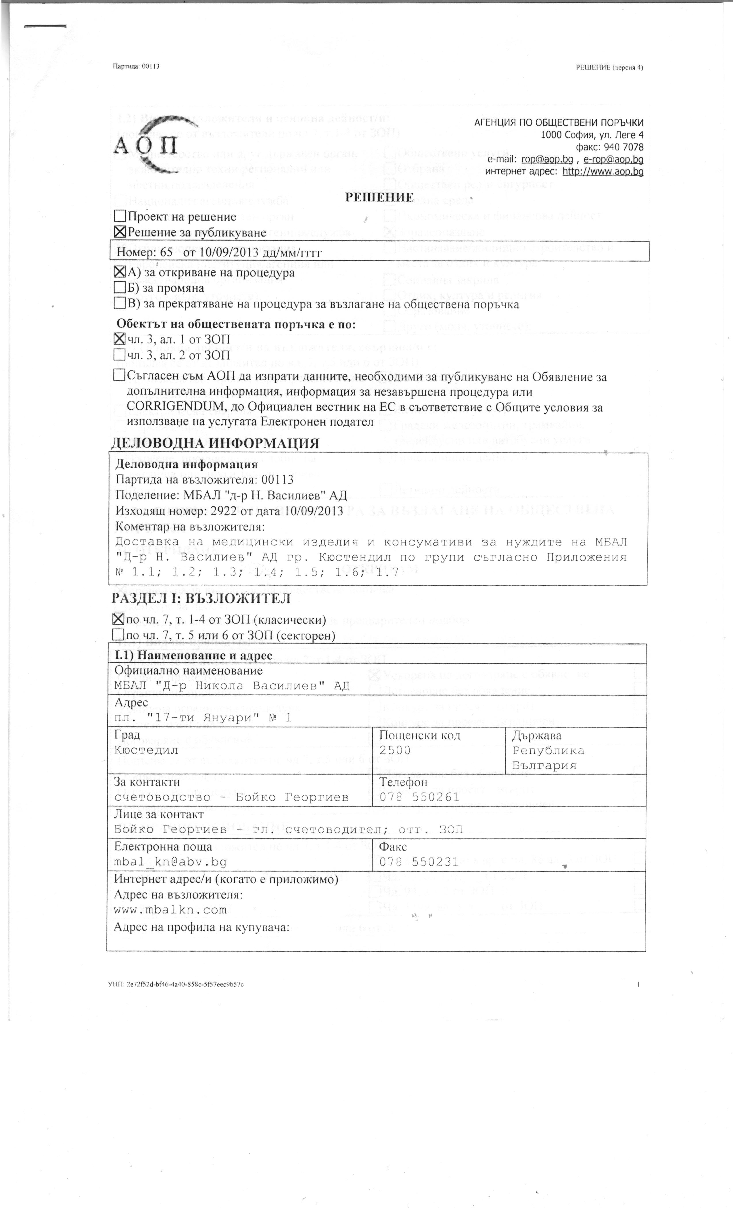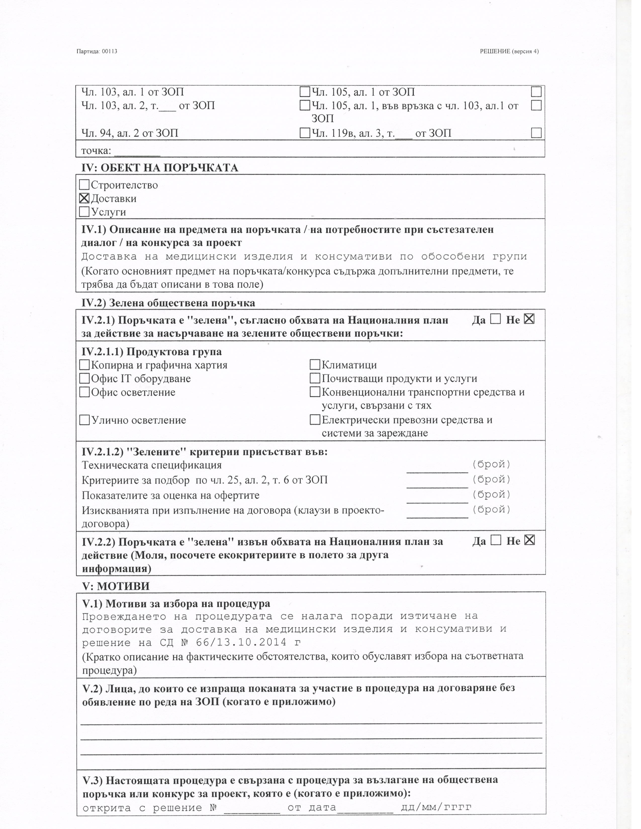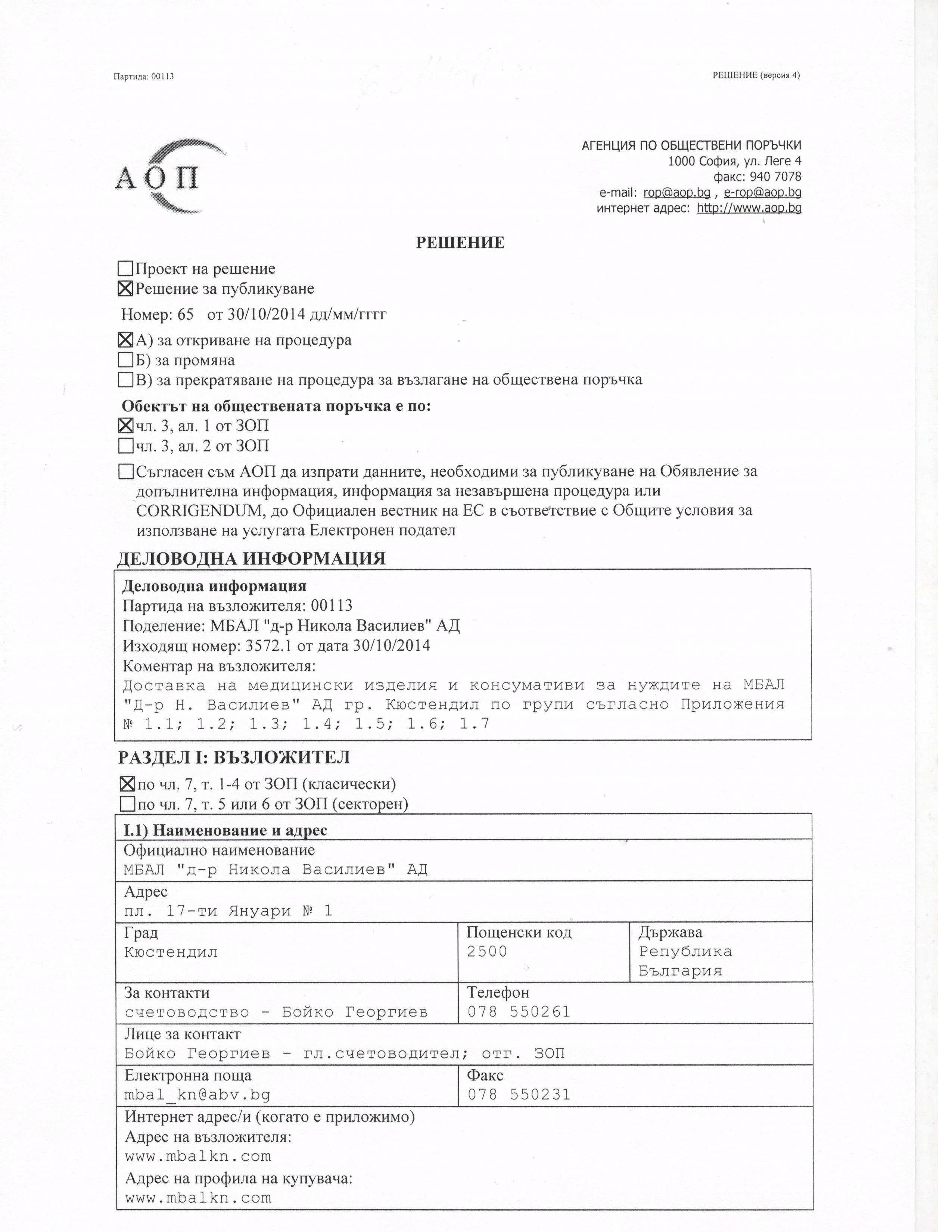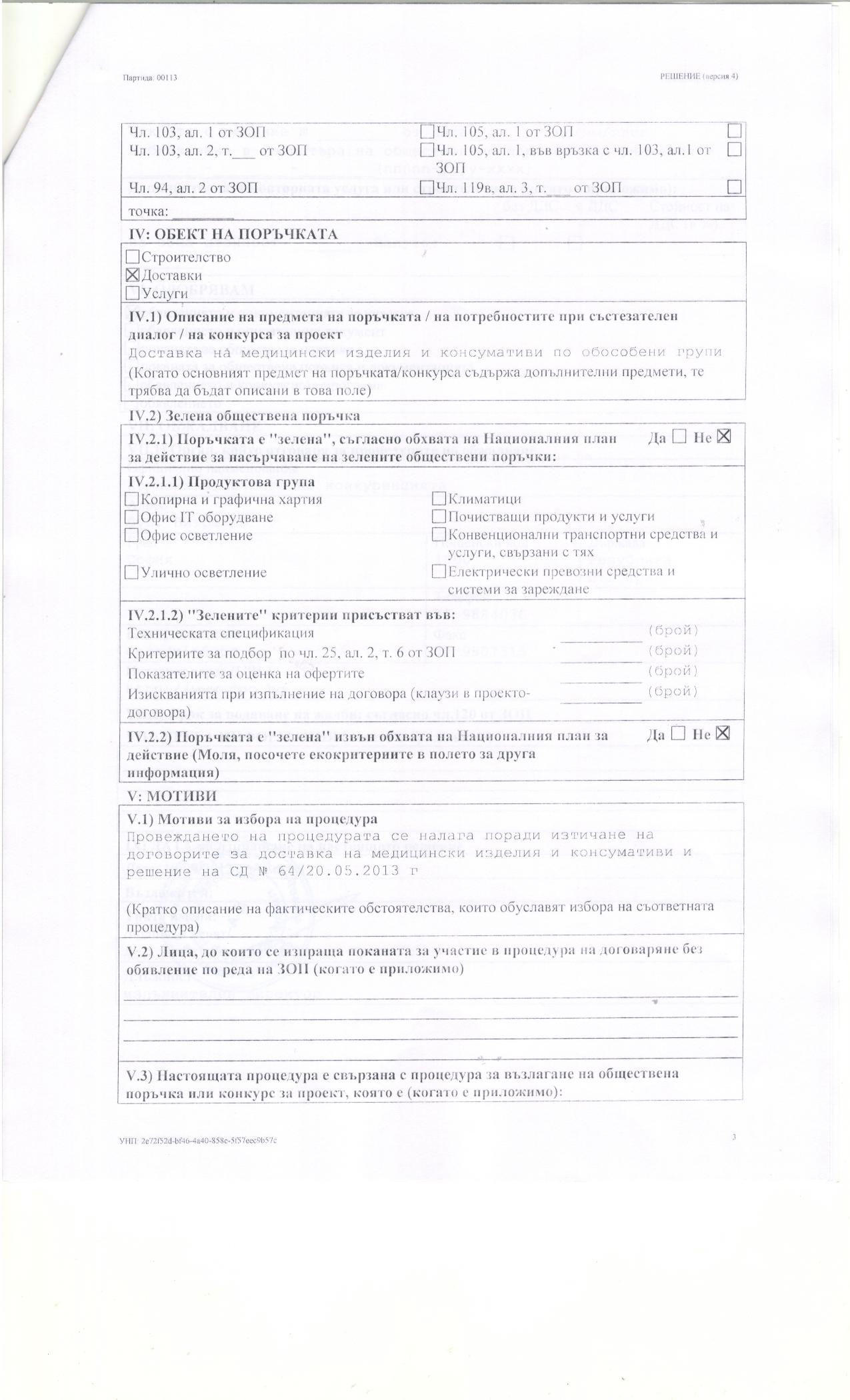 Д О К У М Е Н Т А Ц И Я “Доставка на медицински изделия и консумативи”